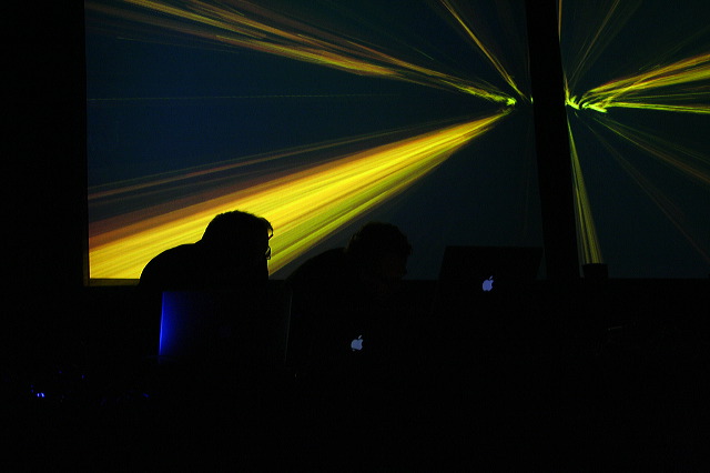 and abstract forms. The guys perform live using controllers,