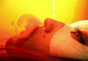 surroundings. Waves of light and abstract color patterns